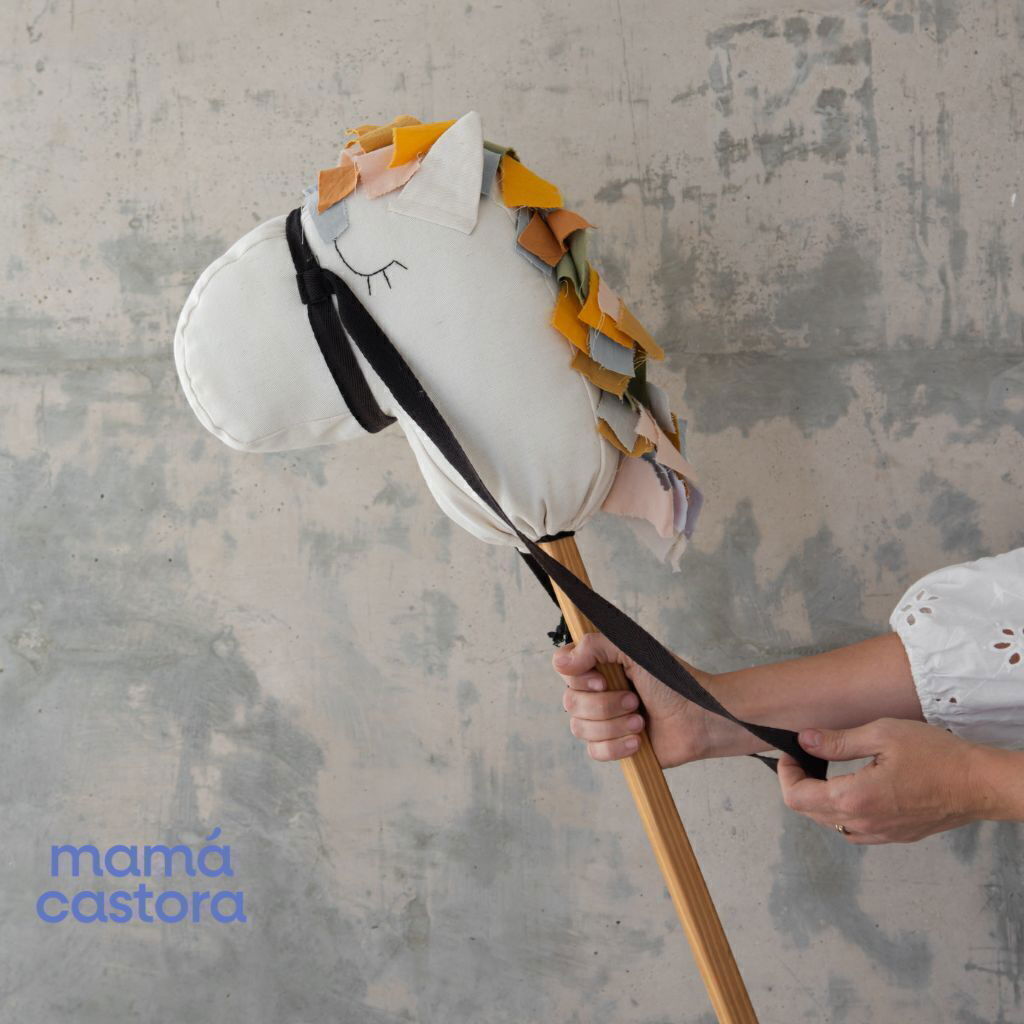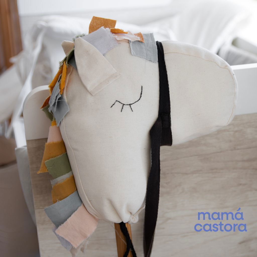 Un clásico que nunca pasa de moda, reinventado en versión artesanal y con mucho encanto. Nuestro caballo de palo está confeccionado en lienzo natural, con melena de retazos de colores que lo hacen único y lleno de vida.