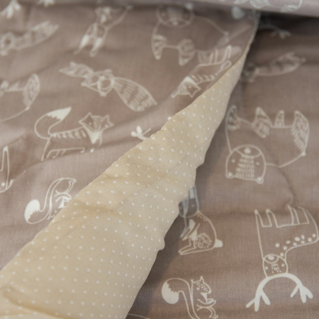 Su relleno de guata aporta abrigo liviano, manteniendo una temperatura confortable durante el descanso. Además, la tela conserva sus colores vivos y su textura suave lavado tras lavado.
