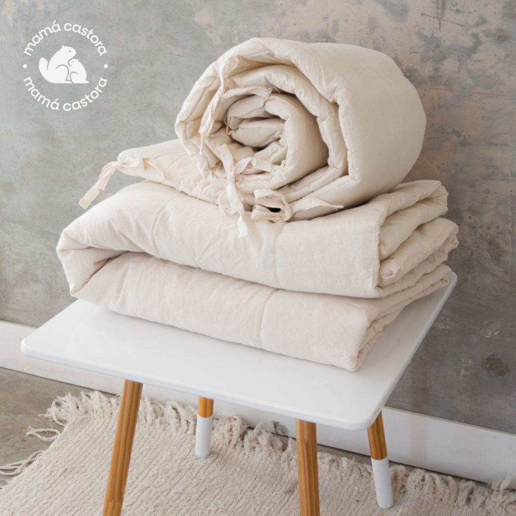 Confeccionado en 100% algodón, es suave al tacto y muy confortable. Su relleno de guata aporta abrigo sin exceso de peso, ideal para mantener una temperatura agradable durante toda la noche.